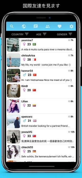 Unbordered(アンボーダーレッド)は、海外の友人作りや語学交流パートナーを見つけるのに最適なマッチングアプリです。送受信できるメッセージの数に制限がなく、写真やボイスメッセージも完全無料で送ることができます。ボイスメッセージでのやりとりは言語のイントネーション上達手段として欠かせません。28か国もの言語翻訳サポートが受けられるのも安心です。年齢・性別・国別に検索することができるので、香港人に出会いたいなら検索してすぐにピックアップができます。また、今世界で起こっている出来事を公開タイムラインで知ることができ、タイムライン上で自分の考えを世界に発信することも可能です。