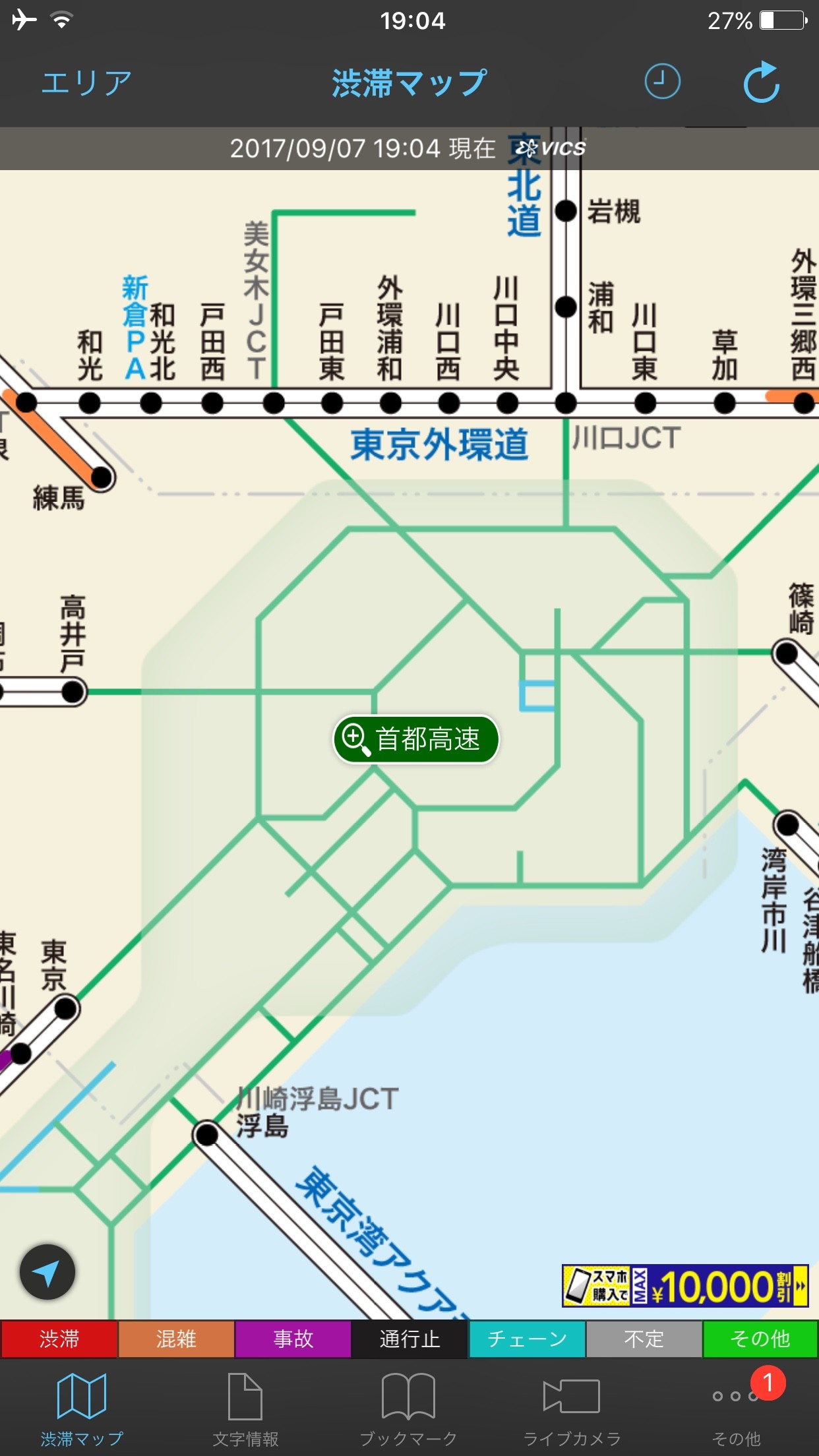 - 都市高速などはワンタッチでズームイン可能で詳細な混み具合がわかる