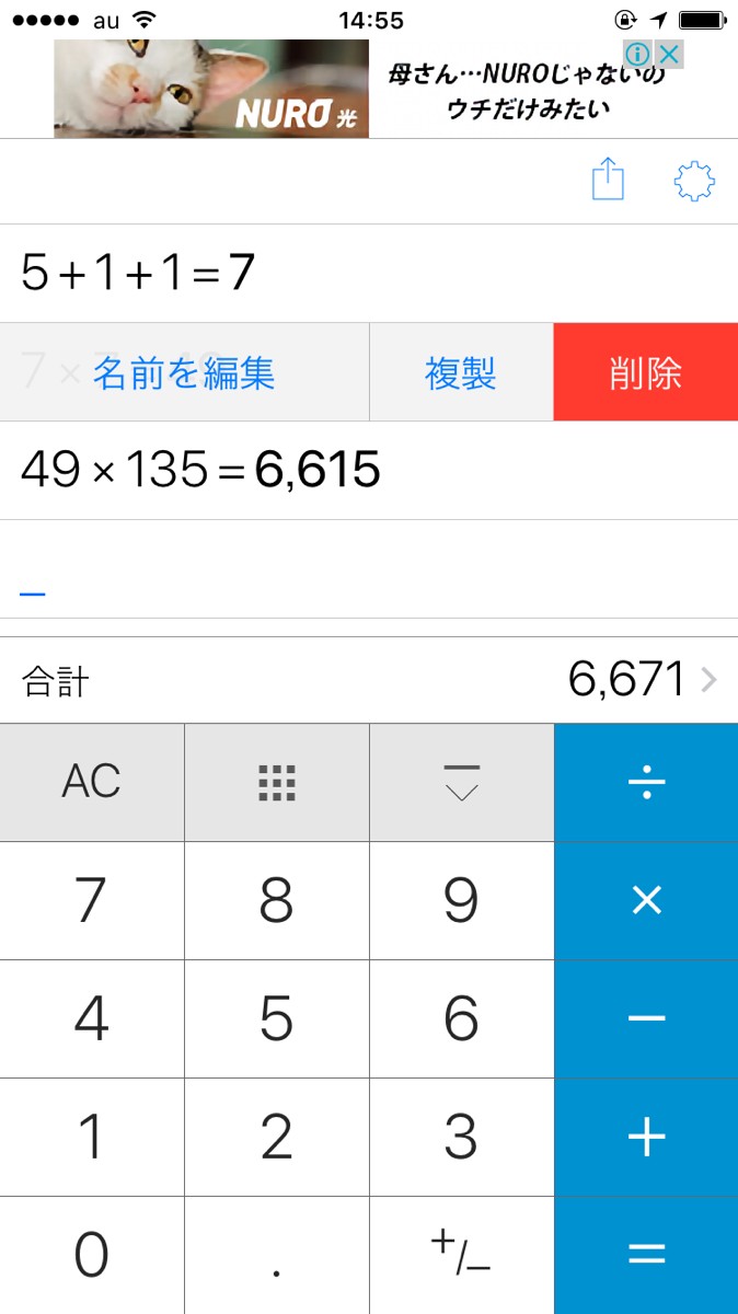 • 通常の電卓では、途中の計算を見ることができませんが、「計算機+」は、途中の経過も全て表示してくれるので、とてもわかりやすいです。途中の計算ミスもすぐに気づくことができます