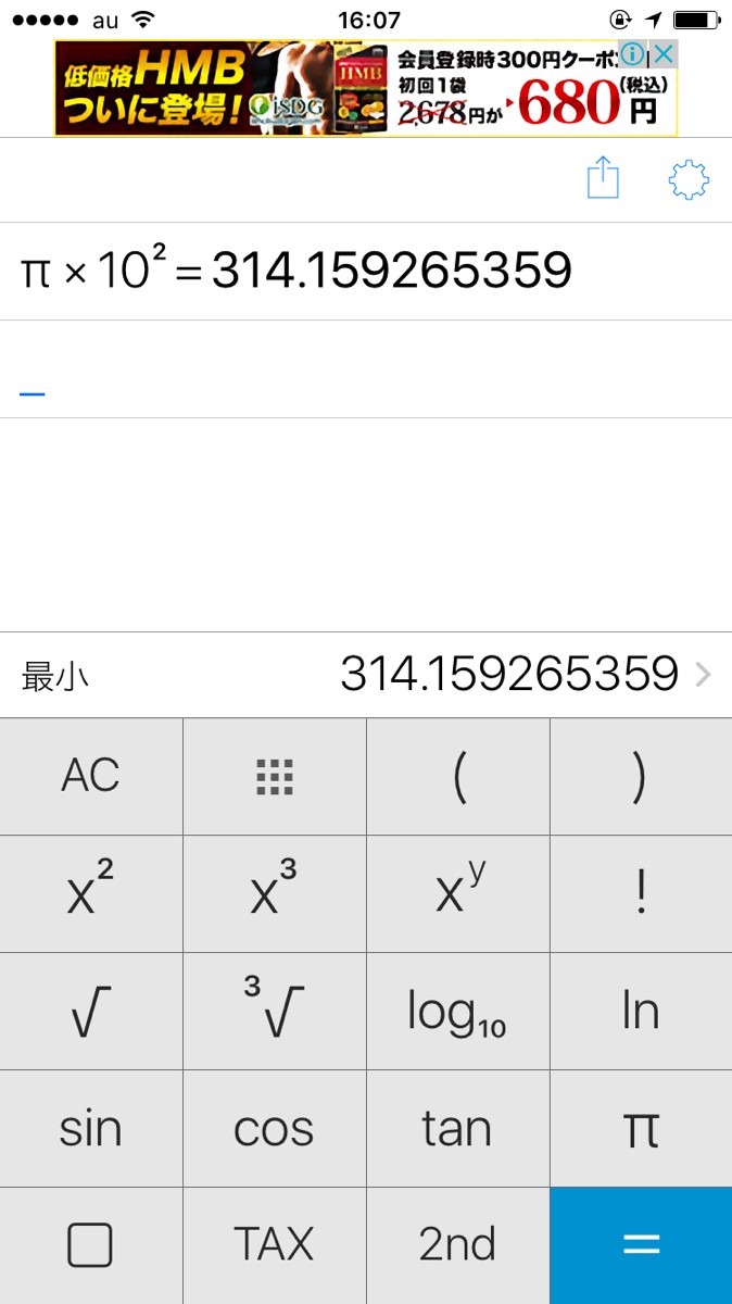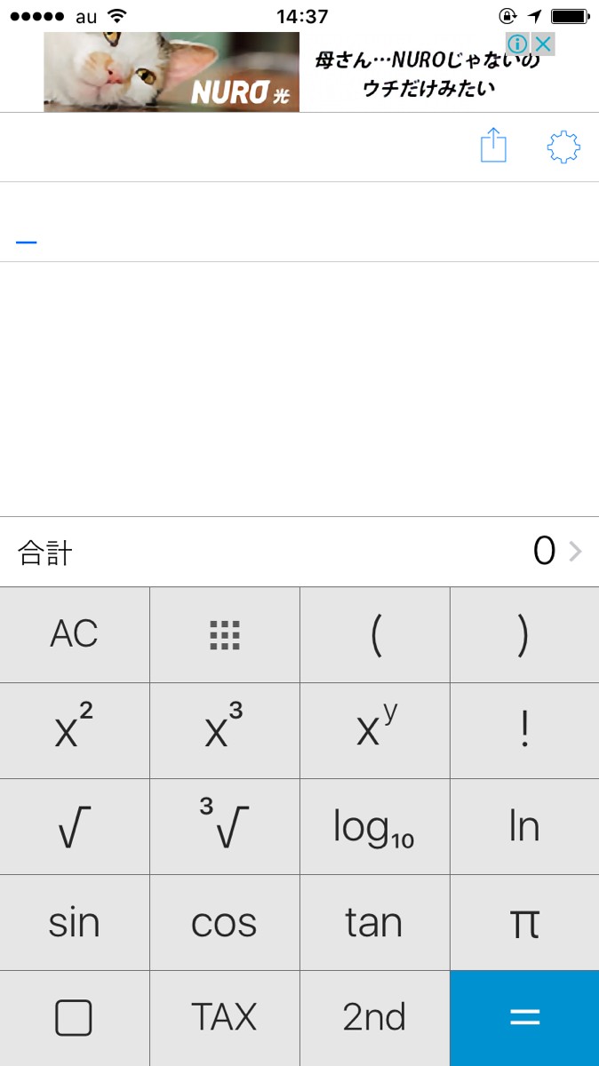 • キーボードを下にスワイプすると、2行目にファンクションボタンが表示されます。ファンクションボタンは設定から自由にカスタマイズすることができます。画面右上の設定をタップして、詳細を選択します。「π」など仕事で必要なボタンに変更することができます