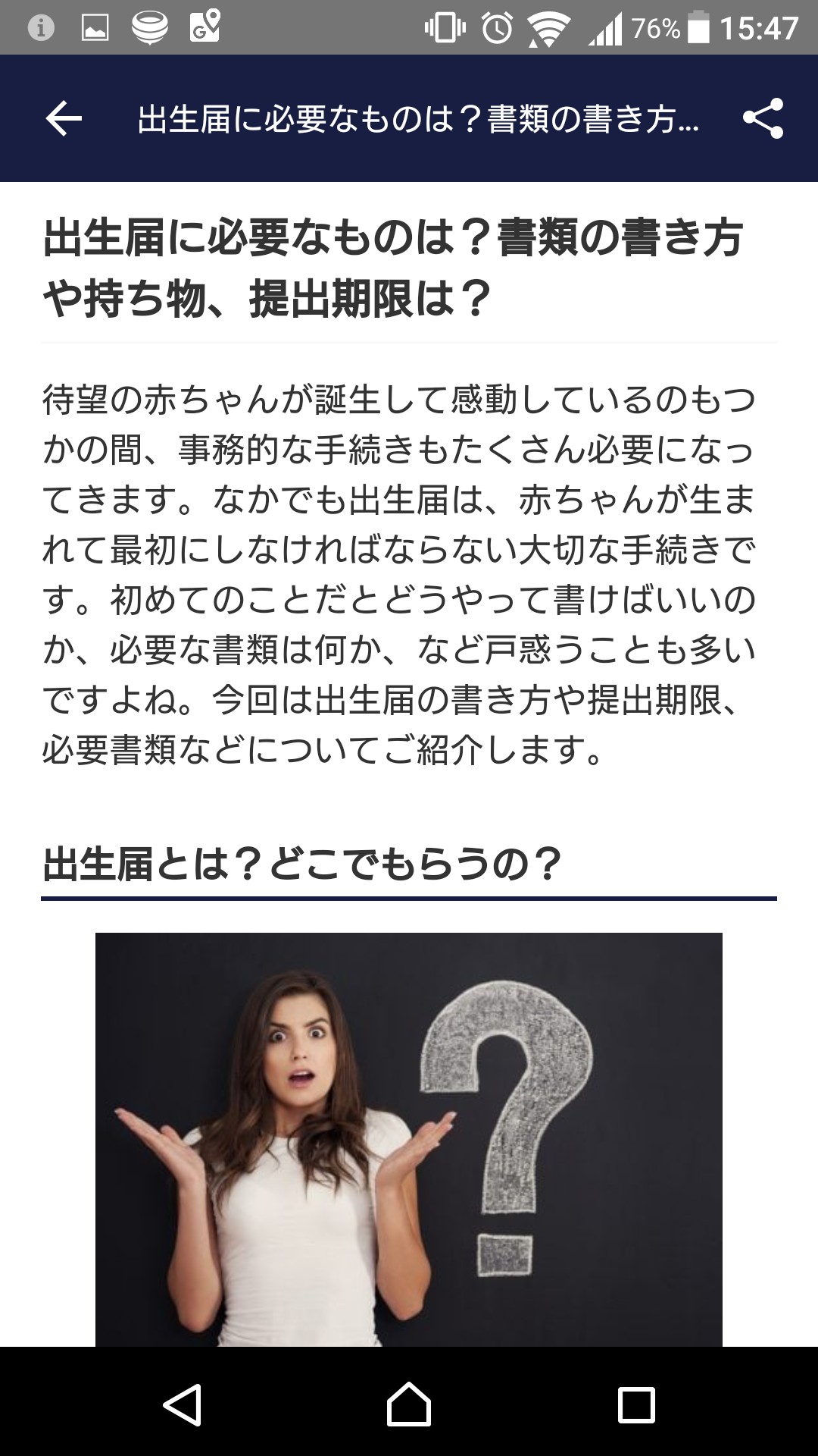 パパninaruは赤ちゃんや妊婦さんの情報だけでなく、妊娠中や出産にかかる費用や大切な手続きについても教えてくれます。