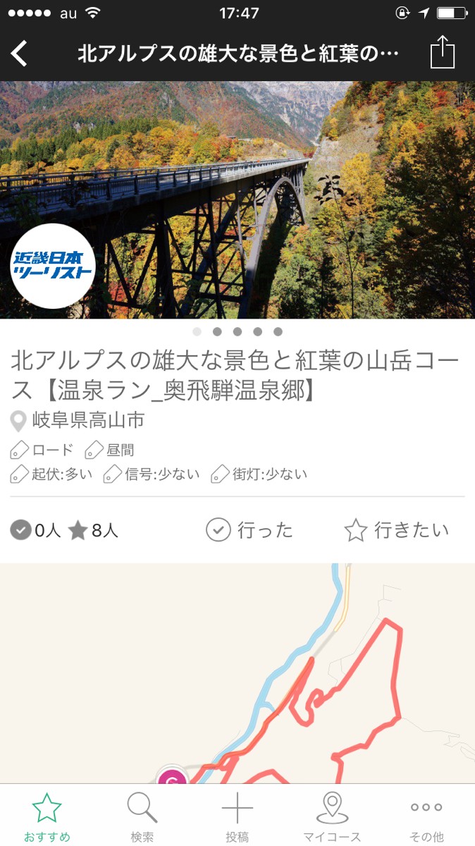 ・会員になれば、自分のお気に入りのコースも投稿できます。「行きたい」にチェックが入ると、嬉しくなりますよ。
