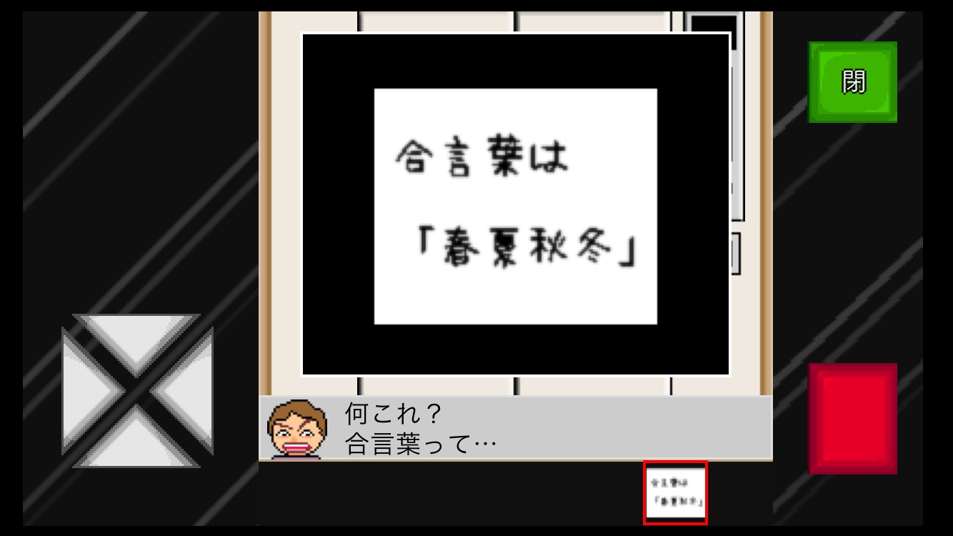 ガラケー時代のゲームということもあり、若干、画像は分かりずらい物もありますが、怪しい場所や物を片っ端から調べていきましょう。