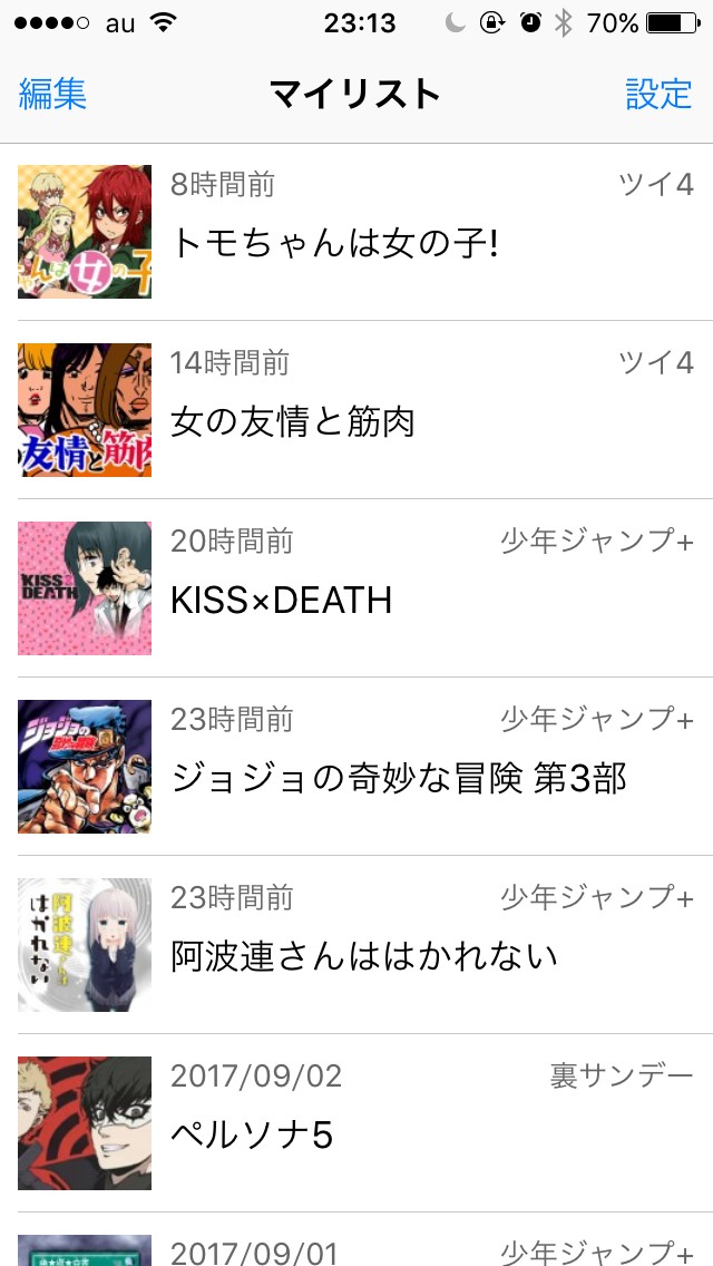 さらにマイリスト内の作品一覧を下にスワイプすることで適宜状態の更新ができます。