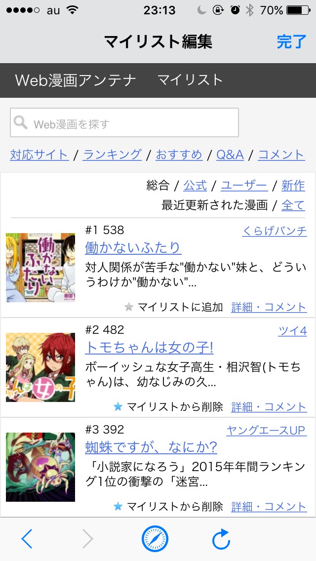 - 「WMAリーダー for Web漫画アンテナ」気に入った作品をマイリストに登録可能