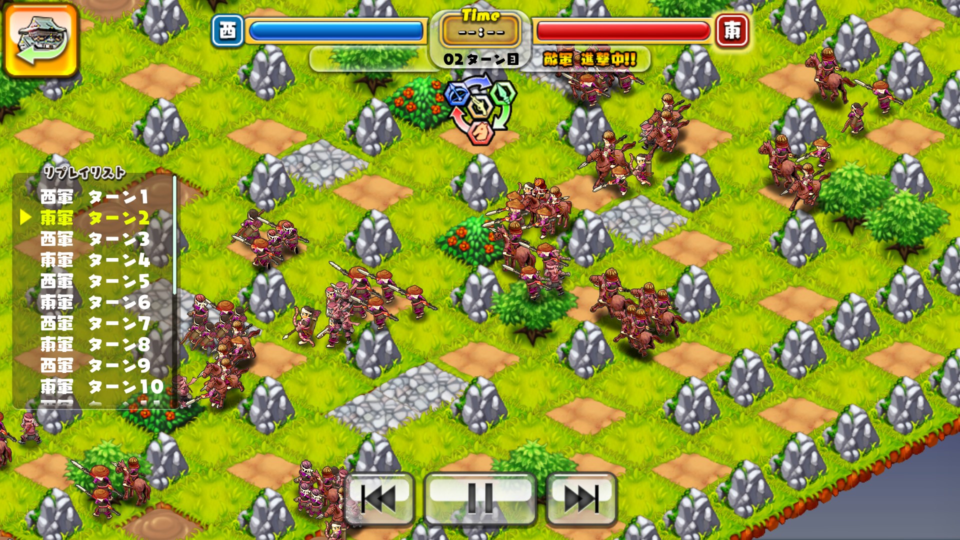 バトルはターン制で部隊をタップして行きたい場所に動かし、近接であれば隣接して攻撃の指示をだしておくと、全ての自軍部隊が動いた後で攻撃を行います。