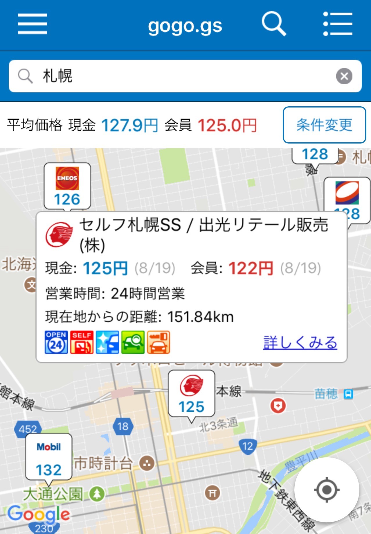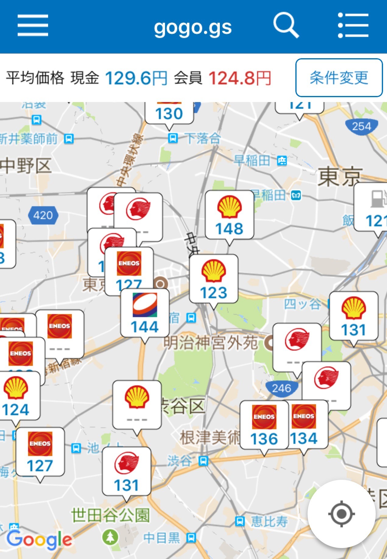 「ガソリン価格比較アプリ gogo.gs」地図、地名、現在地でガソリン価格をカンタン検索!