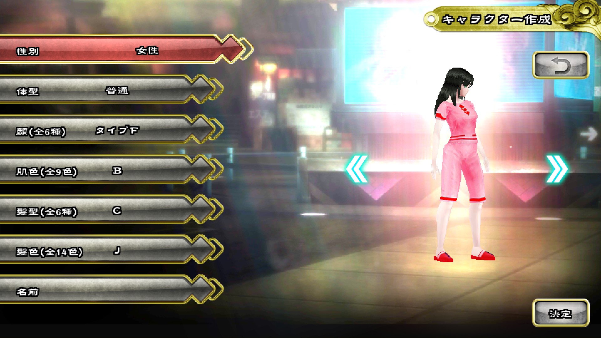 まず始めにあなたの分身となるアバターを作成しましょう。性別・髪型・髪色・顔・体型・肌色などを調整することができます。作成できたらゲームスタート、
