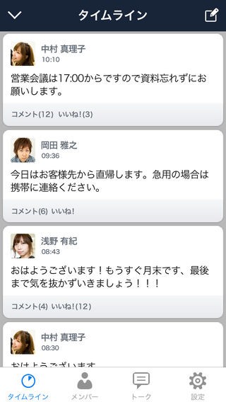 ところです。今までは、会社内に紙面を掲示したり、メールを連絡ツールとして利用したりしていた人も多いでしょう。このアプリを使えば、SNSのタイムラインに投稿するようなイメージで、会社全体へ情報共有ができます。個人個人で連絡を取りたいときは、チャットが利用可能です。情報は暗号化して送信され、セキュリティーもしっかりしているので、安心して利用してみてくださいね。インターネットができれば、時間や場所を選ばず、投稿や閲覧が可能なので、外回りのときでもすぐに、情報の共有ができるのではないでしょうか?