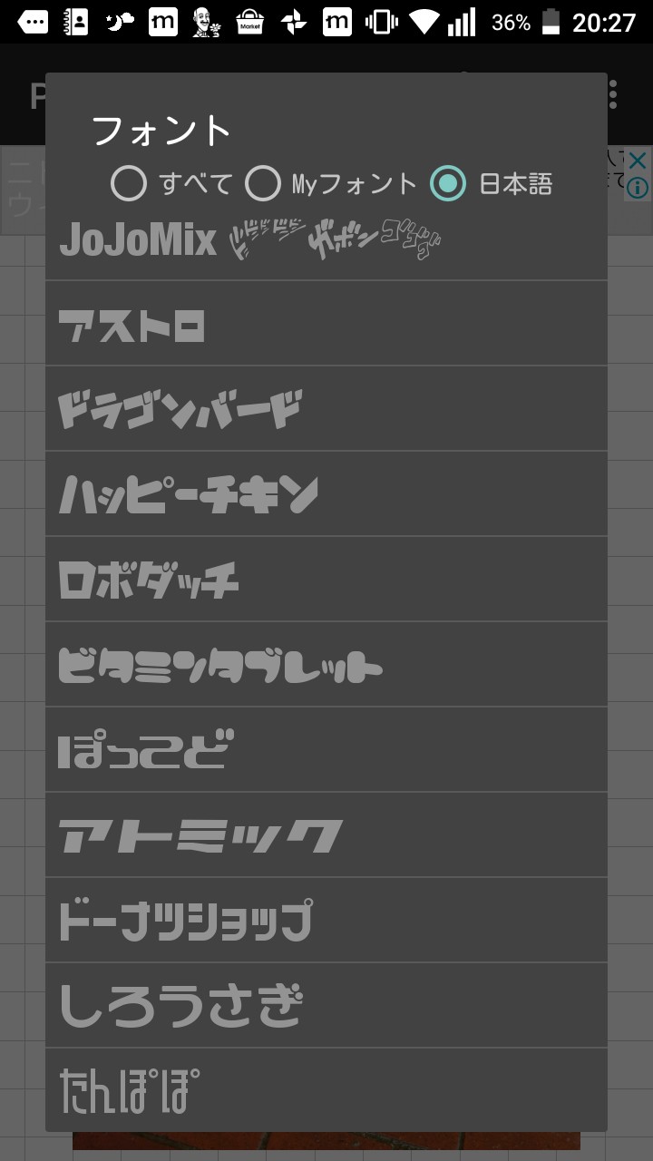 選べるフォントは全部で200種類以上あり、日本語フォントも30種類以上用意されています。それ以外でも、フォントの配布サイトなどから気に入ったフォントをダウンロードして使用することもできます。