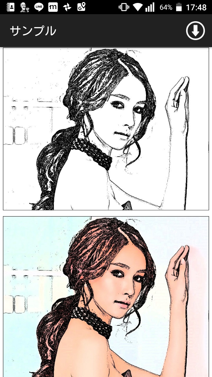 ワンタップでスケッチ風の加工が施されるアプリです。ギャラリーから写真を選択するか、カメラで画像を撮影してスケッチ画像を作成できます。