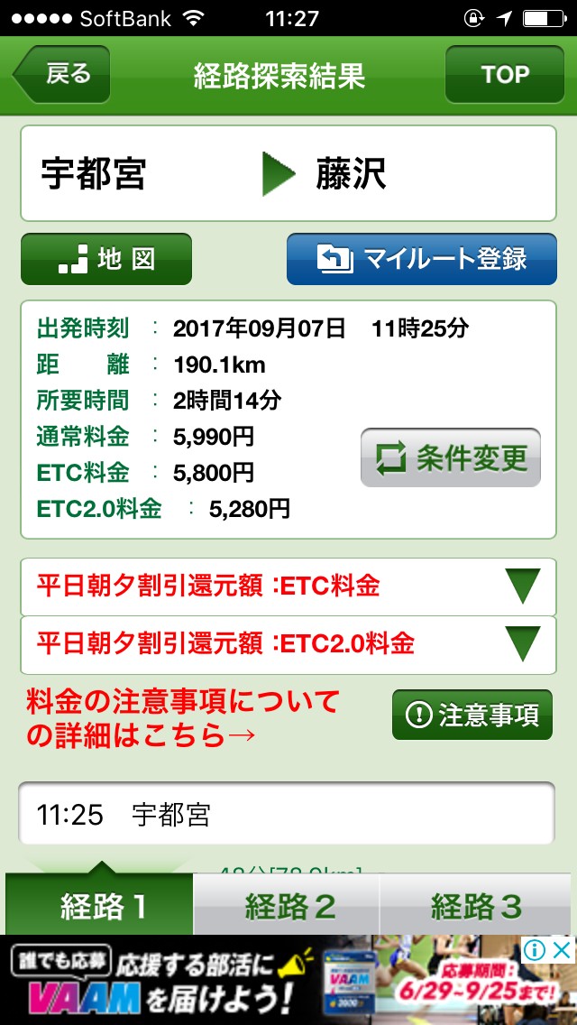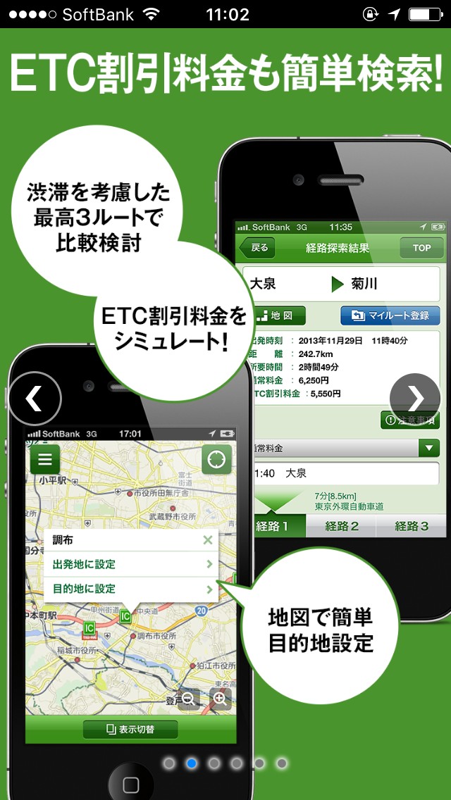 こちらは、高速道路のルート検索、ETCの料金計算と、