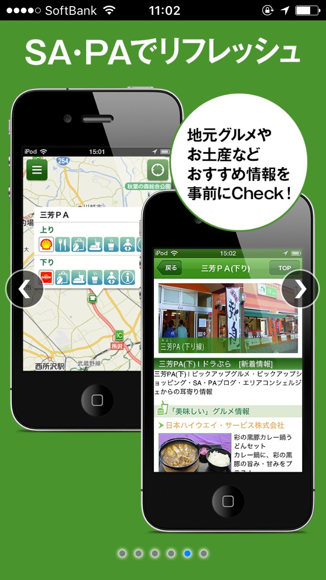 SA・PAの情報までわかるので、運転手以外の同乗者の方にも役に立つアプリです。