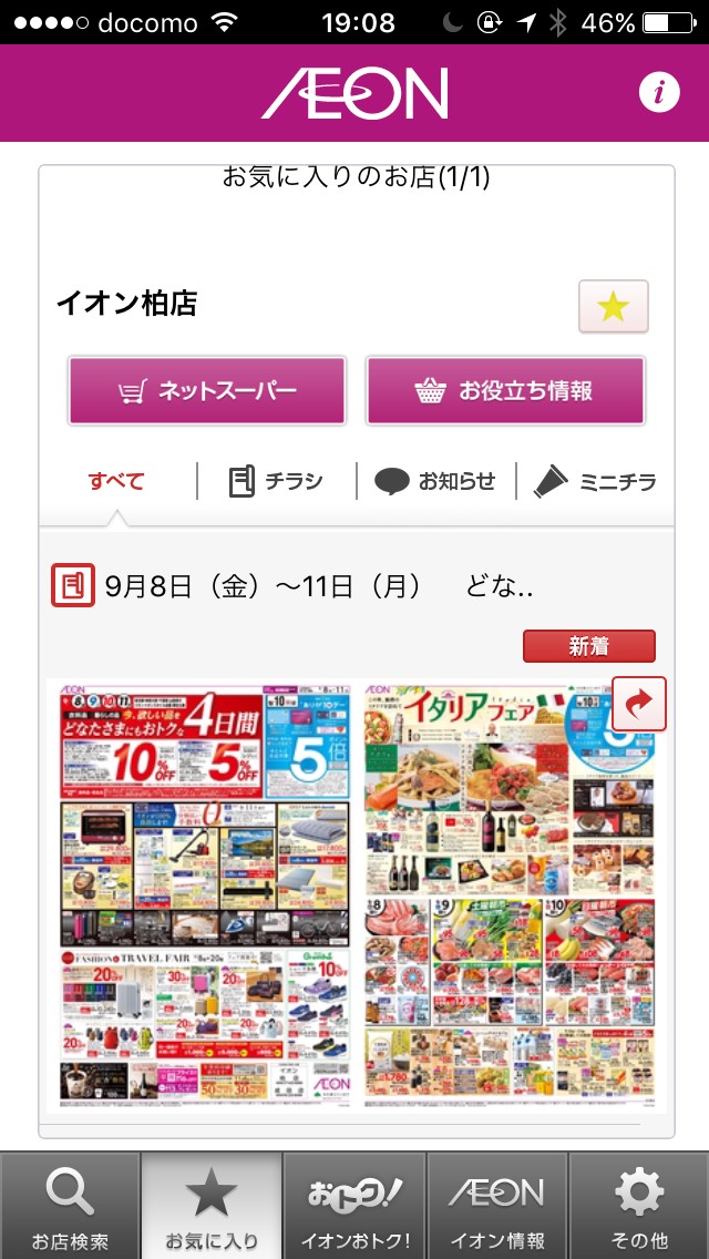 「イオンチラシアプリ」の操作方法(店舗検索~お気に入り登録~お得情報閲覧)