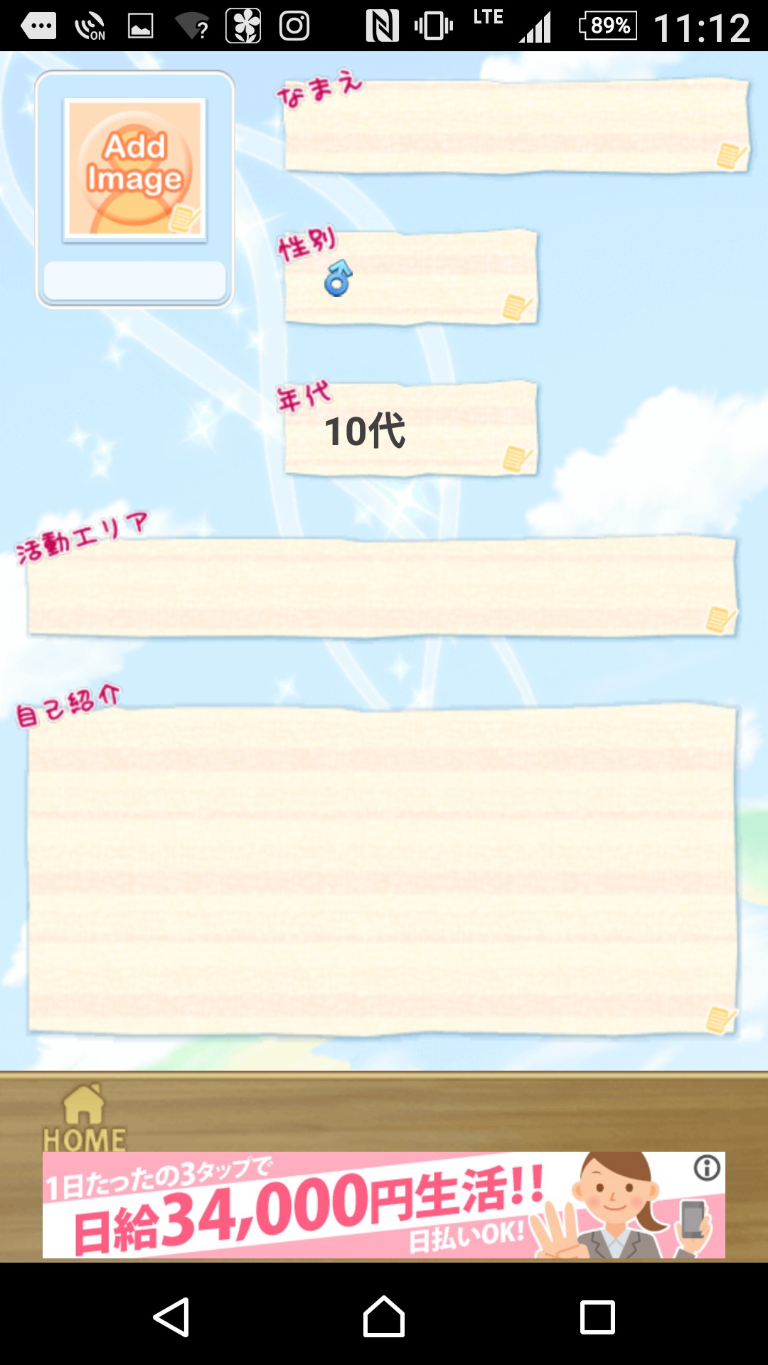 最初に名前、性別、年代、活動エリア、自己紹介文を登録しましょう。後から設定で変更も可能ですよ。