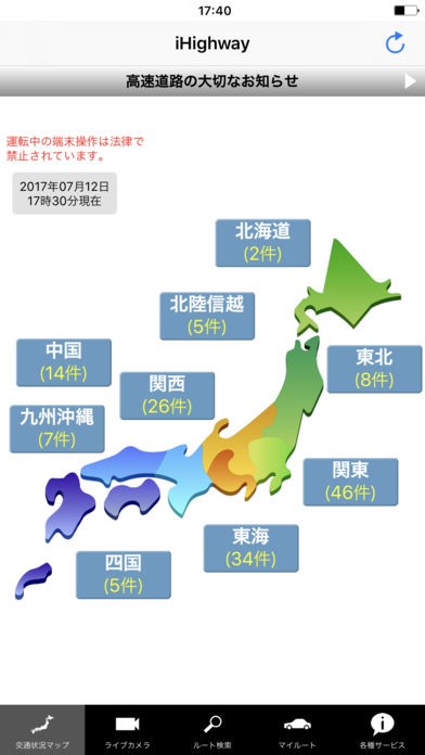 この、「 iHighway交通情報」(アイハイウェイ)では、