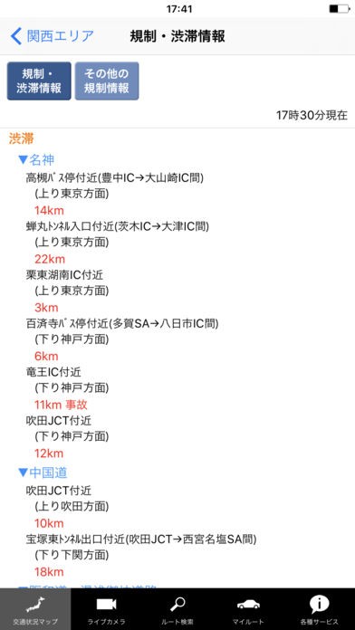 特に、高速道路での移動の際、気になるのが渋滞・遅延情報。その際の日本全国の交通情報をいち早くゲットすることができます。
