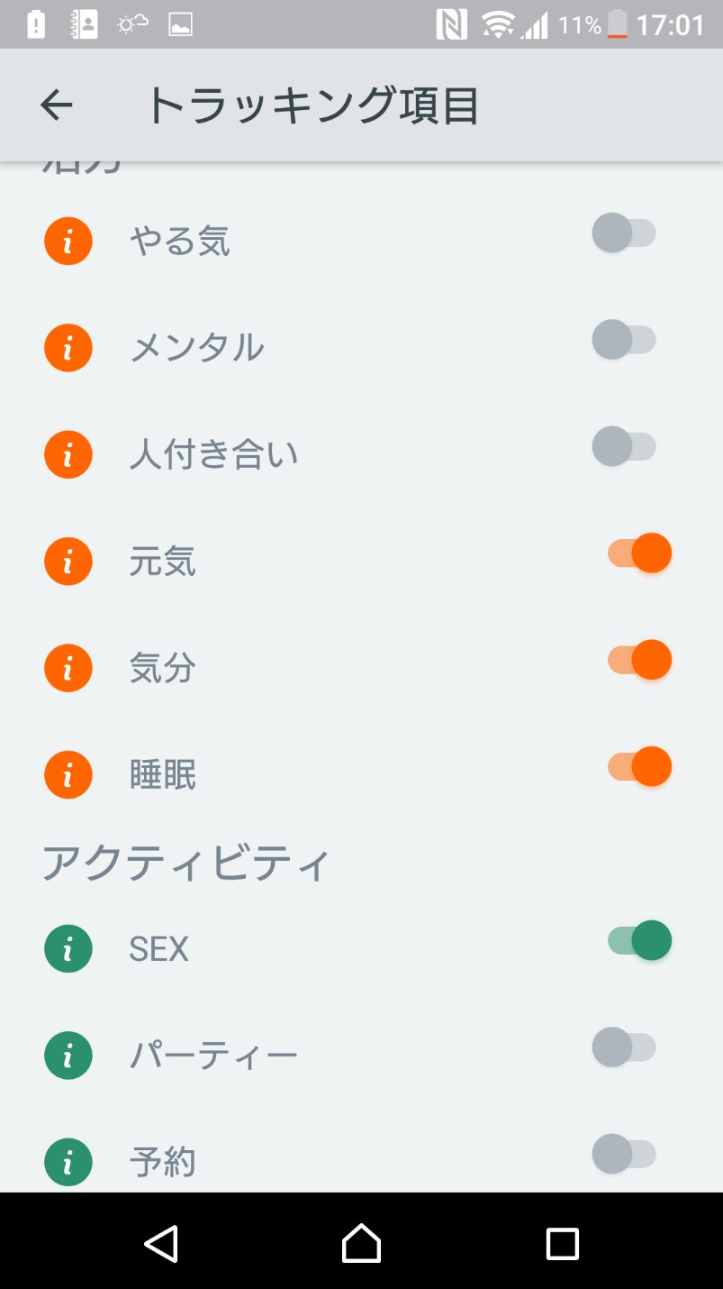 「Clue - 生理サイクル予測アプリ」は、女性の生理周期予測に関するトラッキング項目が31項目も用意されています。生理や精神面、身体の変化についての項目を自分でチェックして、PMSや生理に備え、自分の生理周期についてよく知ることで、生理の傾向などを理解することが出来るのでとても便利です。