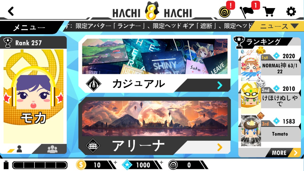ゲームの中でもらえるコインを使えば、自分のアバターを好みに変えることができます。ヘッドホンの種類を変えたり、背景を変えたりして、こだわりのアバターを作れるのも嬉しいですよね。コインは新しい曲を手に入れるときや、対戦プレイに参加するときにも必要になります。シングルで楽しむ「カジュアルモード」で練習をつんでレベルアップしながらコインを集めていけば、もっと「ハチハチ」が楽しめますよ。