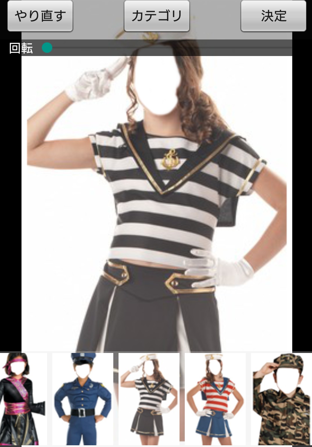 顔写真を当てはめるだけで面白画像がつくれるのが「変身カメラ!」です。アイテムの豊富さが魅力で、サラリーマンやメイドなどのバラエティーキャラから、アニメやゲーム画像のようなものまで幅広く用意されています。アプリ内カメラから撮影もできるので、画像にしっかりと顔を合わせた画像加工が可能です。