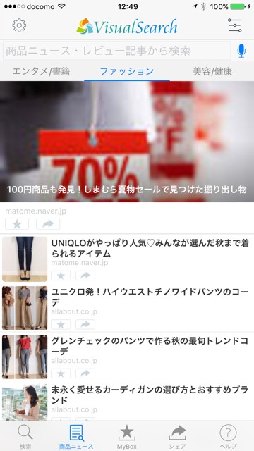 200以上のショッピング関連サイトに対応しており、商品を探すだけでなく、その商品に関する最新ニュースをチェックすることも可能。