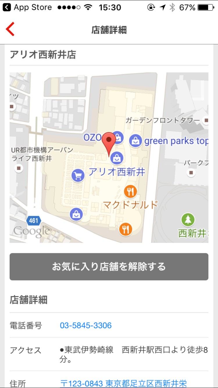 よく行くお気に入りの店舗を登録しておけば、そのお店の情報を表示してくれるので、