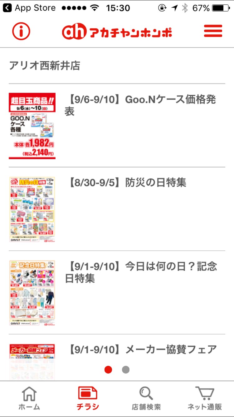 アプリ「アカチャンホンポ」では、お得なチラシ情報を得ることができます。