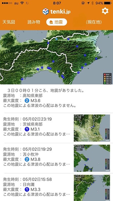 tenki.jp」このシンプルなネーミングのアプリ、日本気象協会の公式「天気予報専門アプリ」です。そのネームバリューもさることながら、きめ細かな天気予報をチェック、10日間の天気予報、最近の突発的な雷雨が増えてお困りの方に向けた現在地のピンポイントの雨状況(豪雨レーダー)の情報などが特徴です。最近も心配な地震情報や台風の進路などがしっかりと的確にお伝えされますので生活もこのアプリを入れておけば一安心。他には天気図、読み物(天気予報士のコラムや日本気象協会所属の気象予報士が最新の天気や防災、季節の話題を解説します)などのサービスも提供されます。「tenki.jp」は無料でご利用できますので多くのユーザーが使用してます。