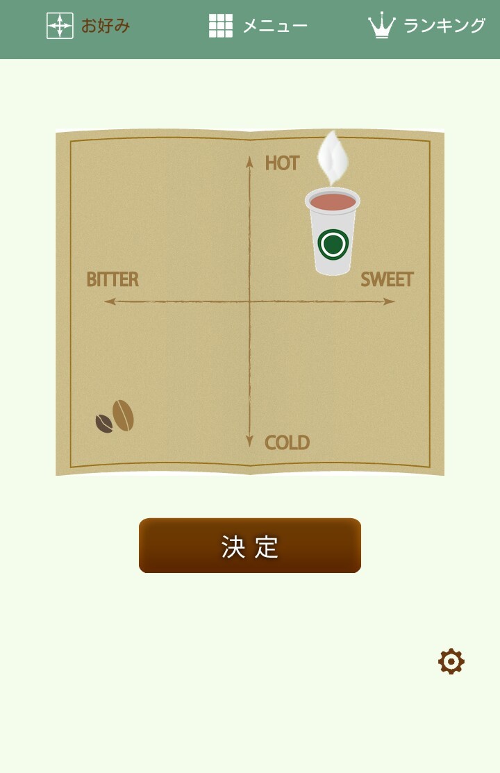 自分が飲みたいテイストの方向へそのカップをドラッグし、決定をタップすれば