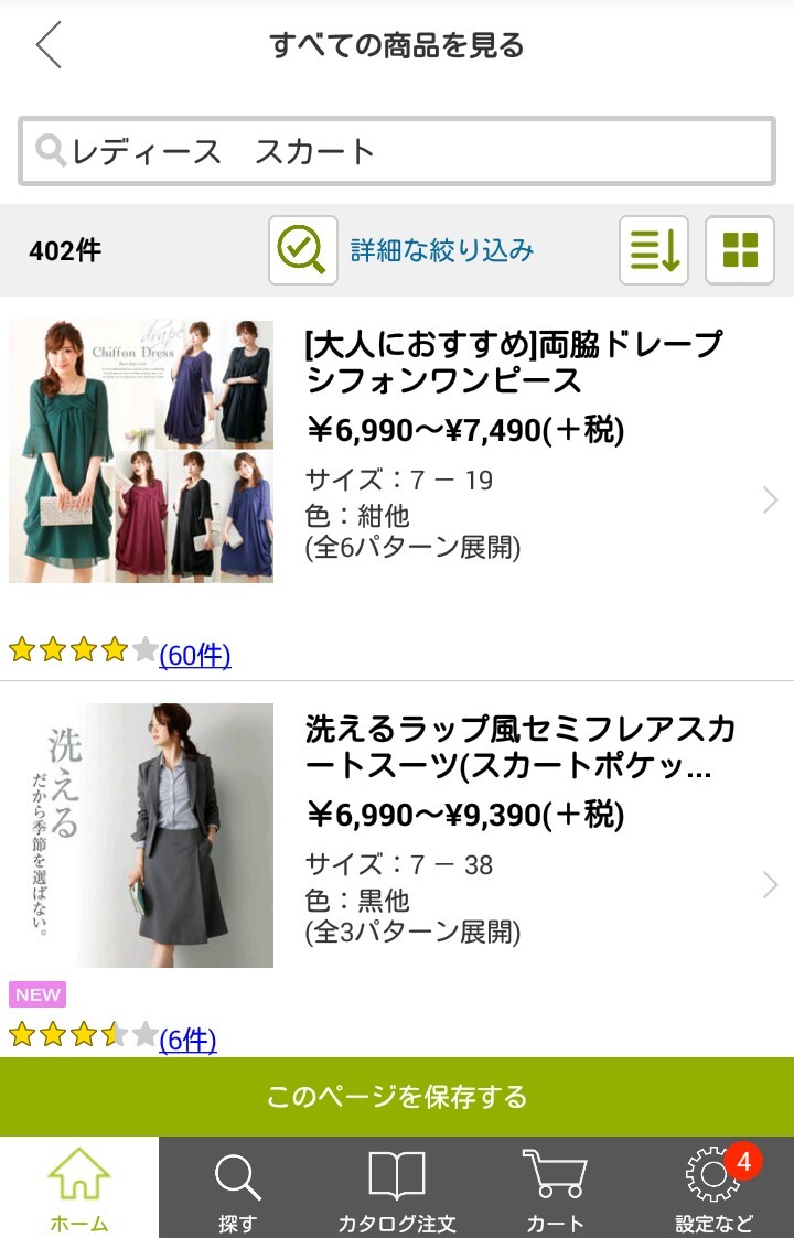 さらに欲しい商品を的確に選びたいときは、「絞り込み検索」を利用してください。サイズや色、価格帯、カタログ掲載商品か否かを選べば更に詳細な検索結果を見ることができます。