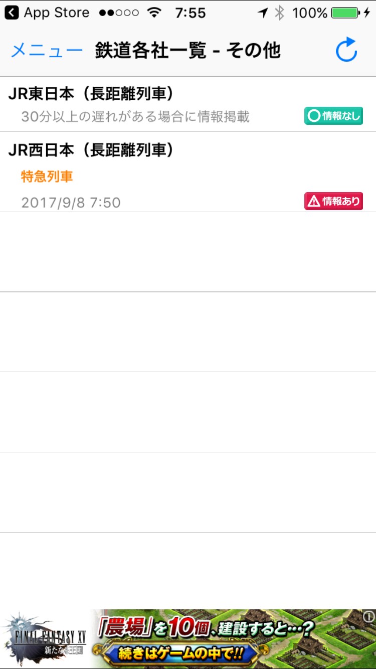 日本全国、出張の多い方には助かるアプリ。お勤めの方も帰りの電車が動いているか分かります