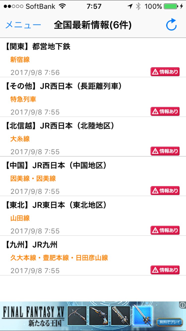 このアプリの特徴です。そのため、日本のどこにいても、日本中のあらゆる地域の路線の運行情報が分かります。