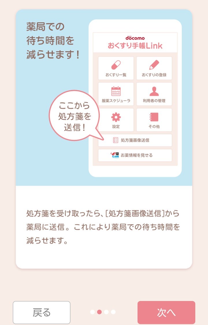 おくすり手帳Linkでは、処方箋を撮影し、画像を効率よく薬局へ送ってお薬を先に作っていてもらうことができます。