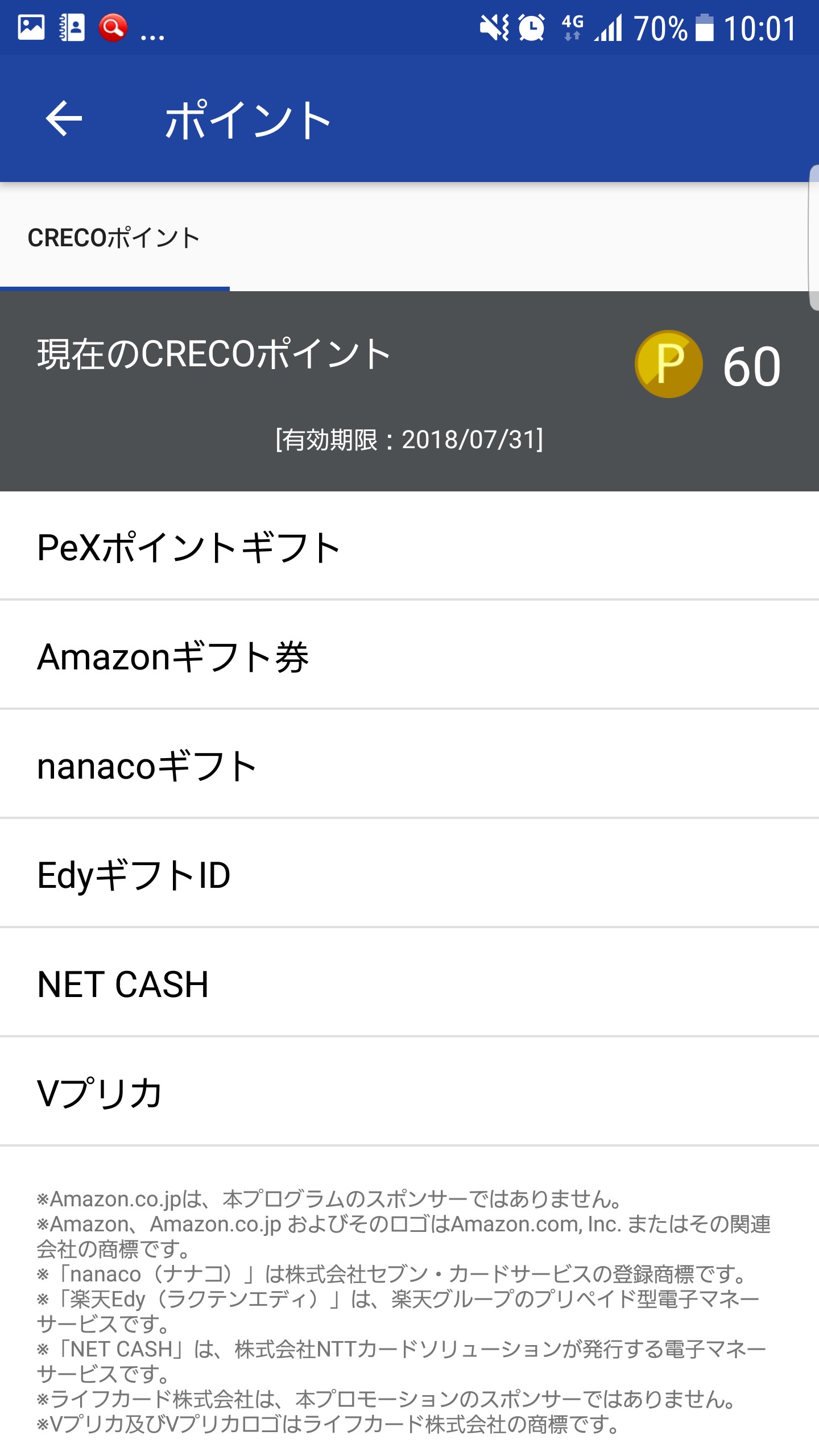 クレジットカードを利用するメリットは、支払いを楽にする以外にやはりポイント還元ですよね?その還元率は各社により様々ですが、このアプリにもアプリを利用するとポイントが付与される仕組みがあります。ポイント付与のルールはいくつかありますが、クレジットカードの登録や、「オファー」機能内の条件達成などでアプリポイントを貯めることができます。また貯まったポイントはamazonギフトに交換したり、nanacoギフトに交換したり等、様々な交換先を選ぶことができます。