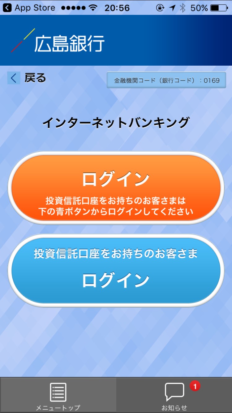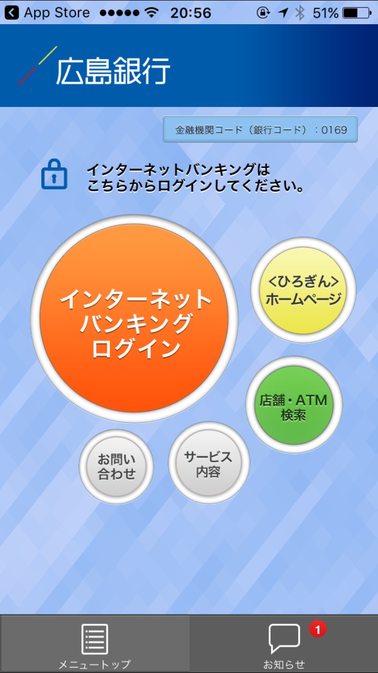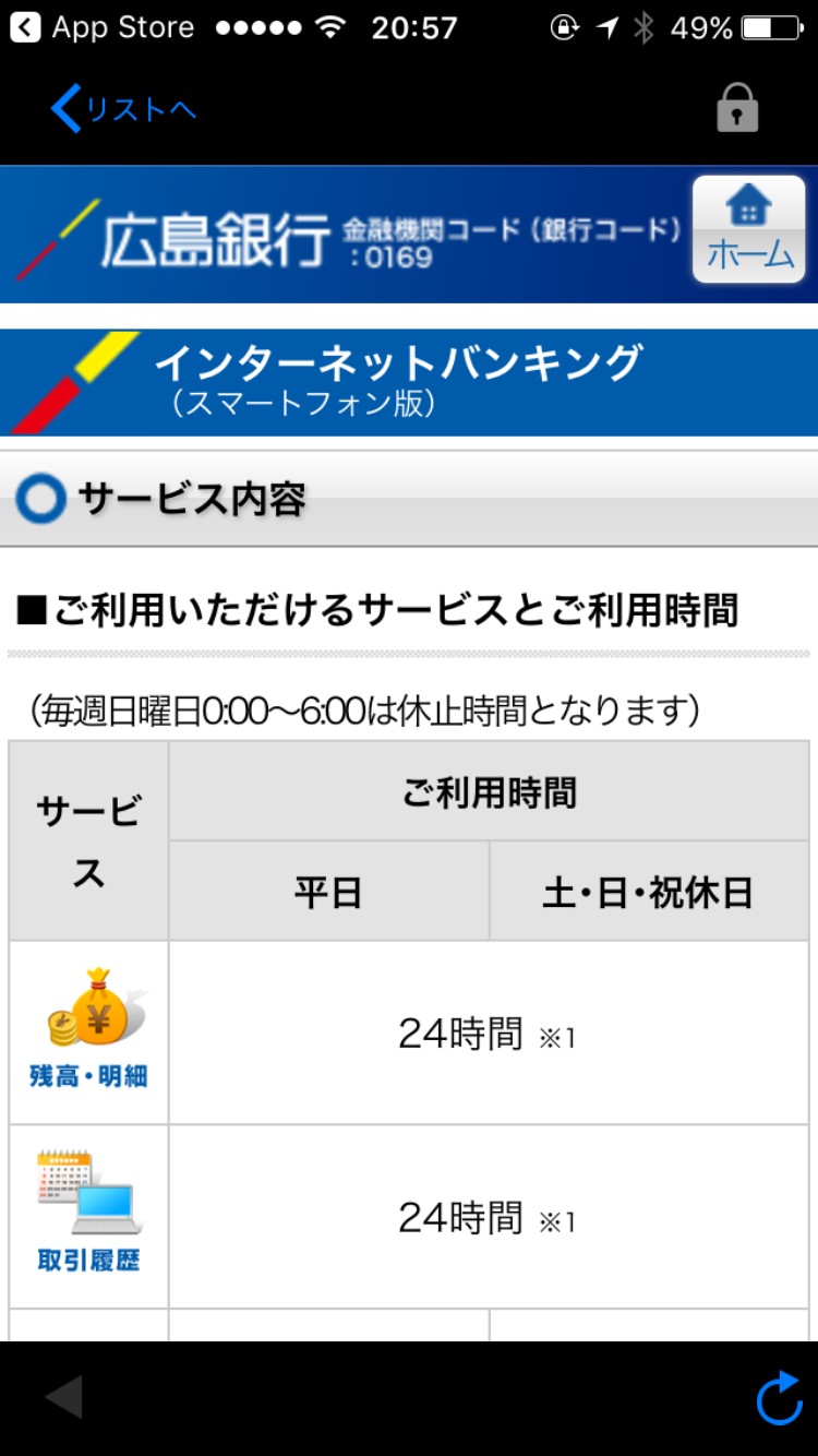 「広島銀行」アプリを使ってみた。