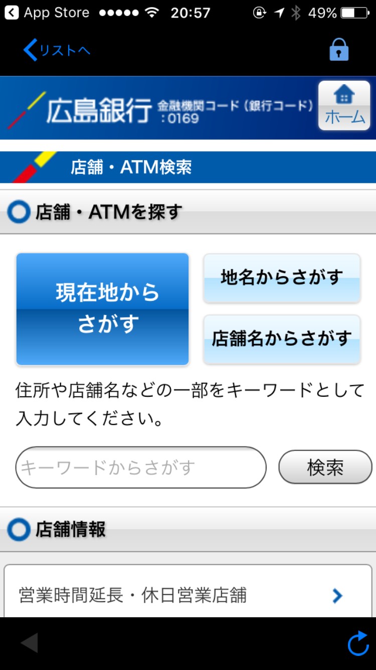 そして、アプリでは、店舗やATMがある場所を検索することもできます。