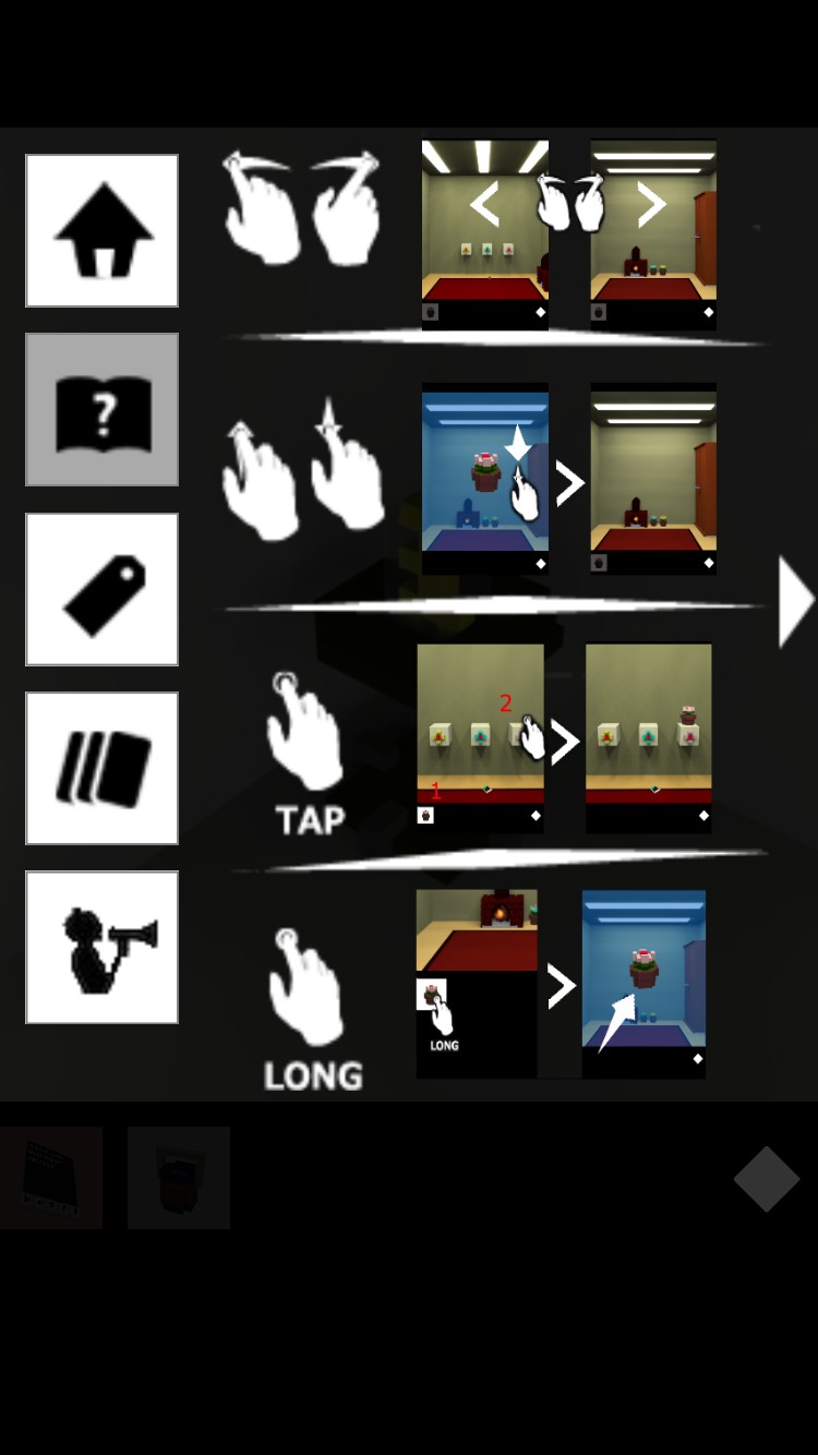 このアプリでは、プレイ中にヒントを見ることができるようになっていますが、あるアイテムを手に入れないとヒントを見ることができません。
