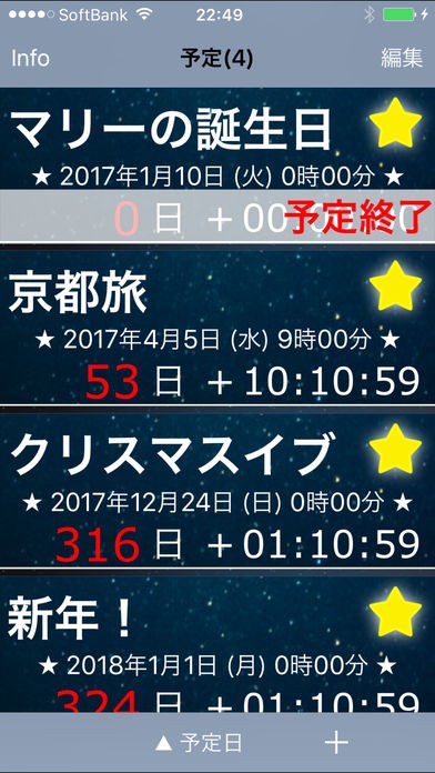 「予定リスト -カウントダウン」でイベントまでの一秒一秒を大切に!