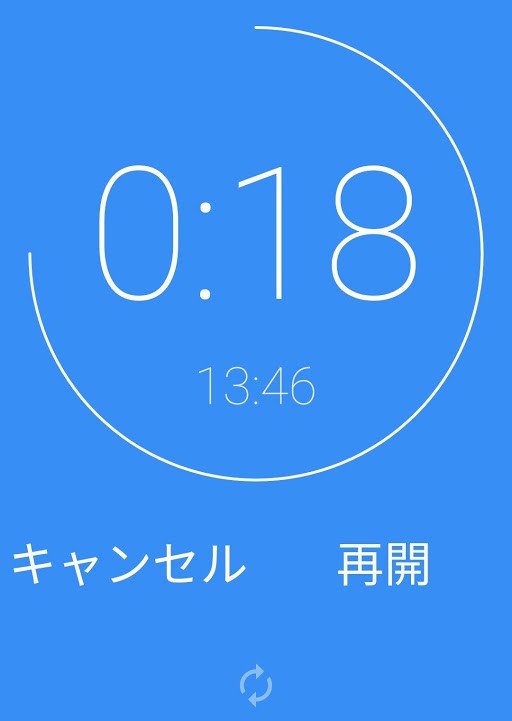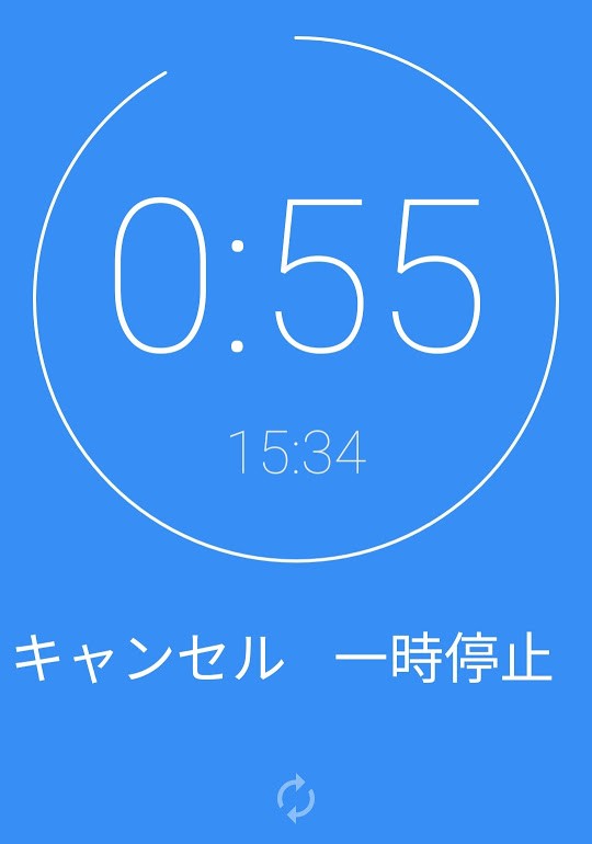 タップしてタイマーを開始すると、画面上に自動で残り時間と終了時間が表示されます。残り時間表示は、短い時間を計る時に便利ですね。一方終了時間表示も、料理をする時などにできあがりの時間が分かるので、作業の効率アップが見込めます。