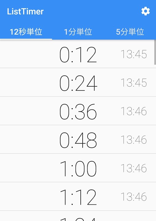 1.アプリを起動し、設定から「時間単位の変更」をクリックして12秒単位にチェックを入れる