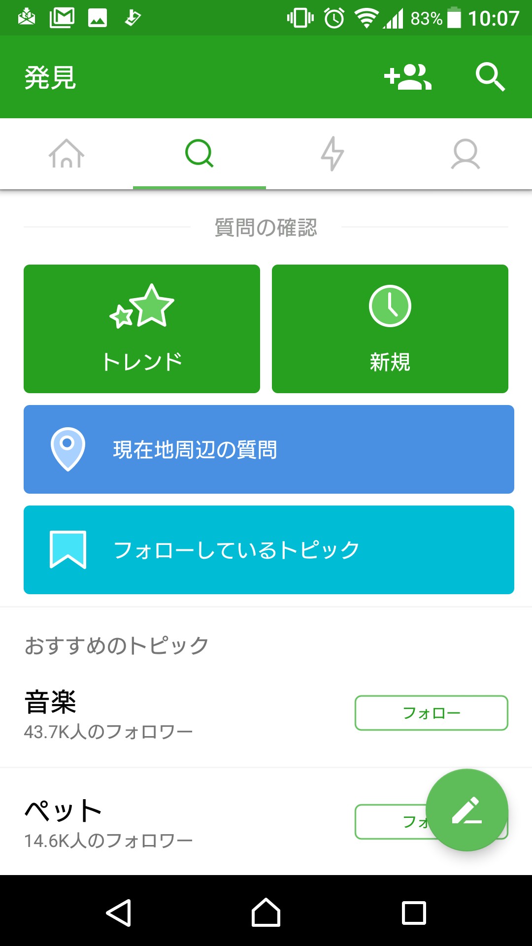 ・いいね!やフォローの多いトレンドの質問をみることができる