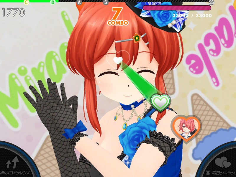 リズムゲームは上から降ってくるアイコンを、下のマーカーまで落ちてきたらタイミングよく押すという遊びやすいタイプ。リズムに乗る楽しさもそうなのですが、3Dで動く女の子たちのパフォーマンスから目が離せません!