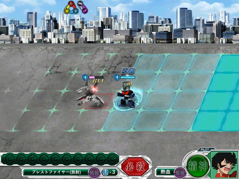 バトルシステムは『ラインオペレーションバトル』というシステムを採っています。フィールド上に配置されたスーパーロボットたちに配置指示を出すことで、同ライン上にいる敵ユニットを迎え撃ちます!