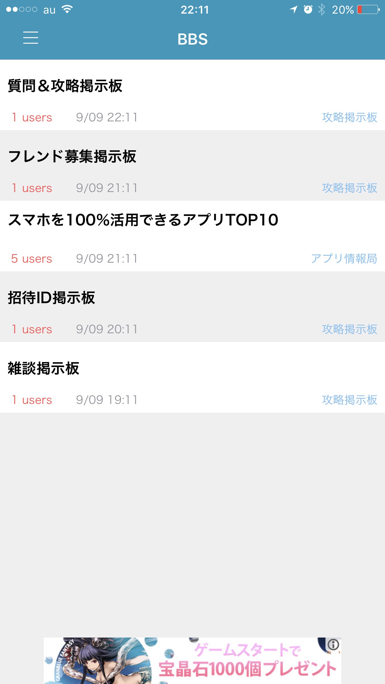 アプリから以下の掲示板が使えるようになっています。