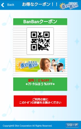 『カラオケBanBan』各店の受付で、スマートフォンから"BanBanクーポン"の画面を提示すると、割引サービスをはじめ、各種の特典が提供されます。