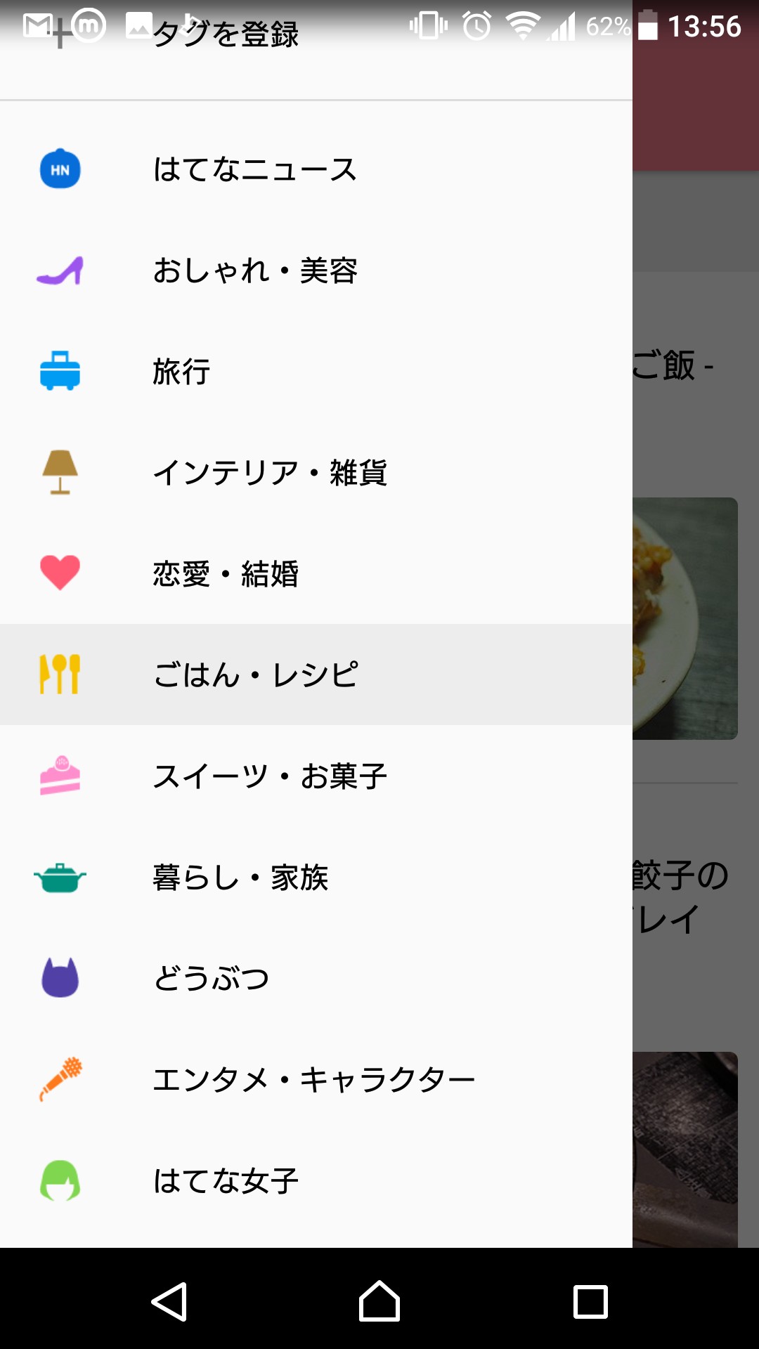 「はてなニュース」「おしゃれ・美容」「旅行」「インテリア・雑貨」「ごはん・レシピ」「恋愛・結婚」「スイーツ・お菓子」「暮らし・家族」「どうぶつ」「エンタメ・キャラクター」「はてな女子」の11のジャンルがあります。