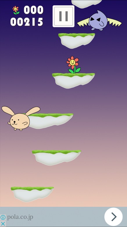 「とべ!うーやん」の基本操作は画面をタッチするだけなので簡単です。左タッチで左に移動し、右タッチで右に移動します。お花を集めて仲間を増やすこともできます。上から落ちてくるカミナリに気をつけながら画面をタッチしてうーやんを上まで行けるように登って行きましょう。うーやんはオート機能で自動で登っていきます。プレーヤーは、崖にうーやんが登れるように画面を左右タッチしながらうーやんを操作します。また、画面左上にはスコアが表示されており、うーやんが崖を登るとスコアが加算されるます。