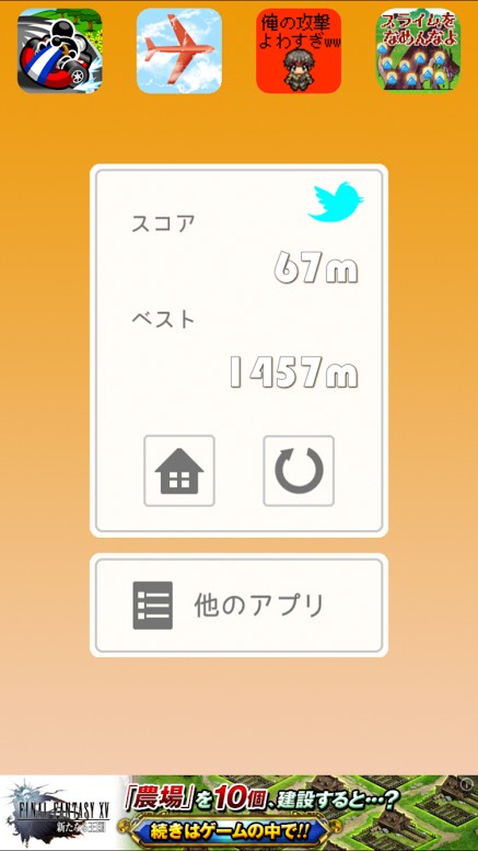 「とべ!うーやん」では、GameCenterに対応しているので、全国の人たちとスコアを競い合うことができます。全国ランキングに参加するにはGameCenterに登録しサインインする必要があります。GameCenterは「とべ!うーやん」だけでなく他のアプリでも全国のランキングに参加できるので、もしまだ登録をしていない方はこの機会に登録してみては?ランキングに参加して上位を目指して崖を登ろう。