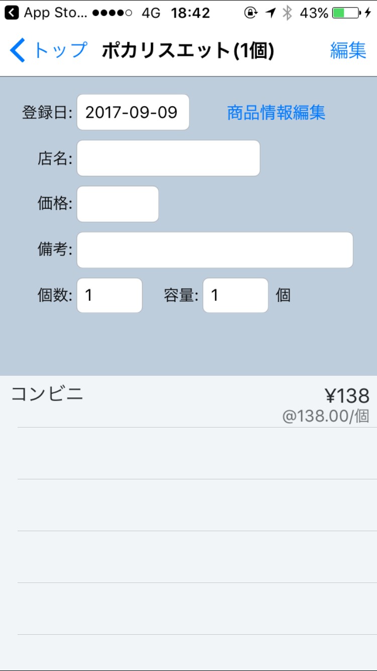 その商品を買ったお店、価格、などを入力したら、「登録」をタップ。