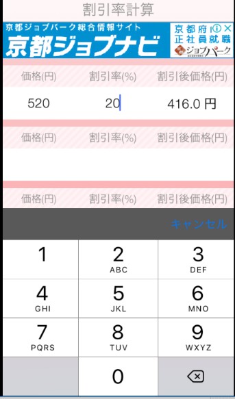 他にも割引後の価格が計算できるなど、便利な機能がたくさん付いています。